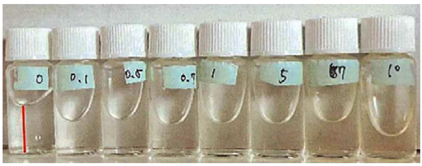 市販の飲料水は色のついたものが多く、色で判断するAGEスケールを使うのは難しい。そこで、糖化度が進むとコラーゲンが融けやすくなる性質を利用する。3種類の色つき飲料水を用意した。3種とも含まれる果糖濃度は10%程度だ。コラーゲン基本液と、コラーゲン基本液の水を3種に置き換えたものをヨーグルトメーカーで糖化させ、2日間経過したところで冷蔵庫で固めた。常温に出して傾けて置き、70分後に底から固まったところまでの長さを測った。基本液が2cm弱の長さがあったのに対し、飲料水は3種とも0.5cmもなく、ほぼ同じ長さだ。同程度に糖化が進んでいることがわかった。