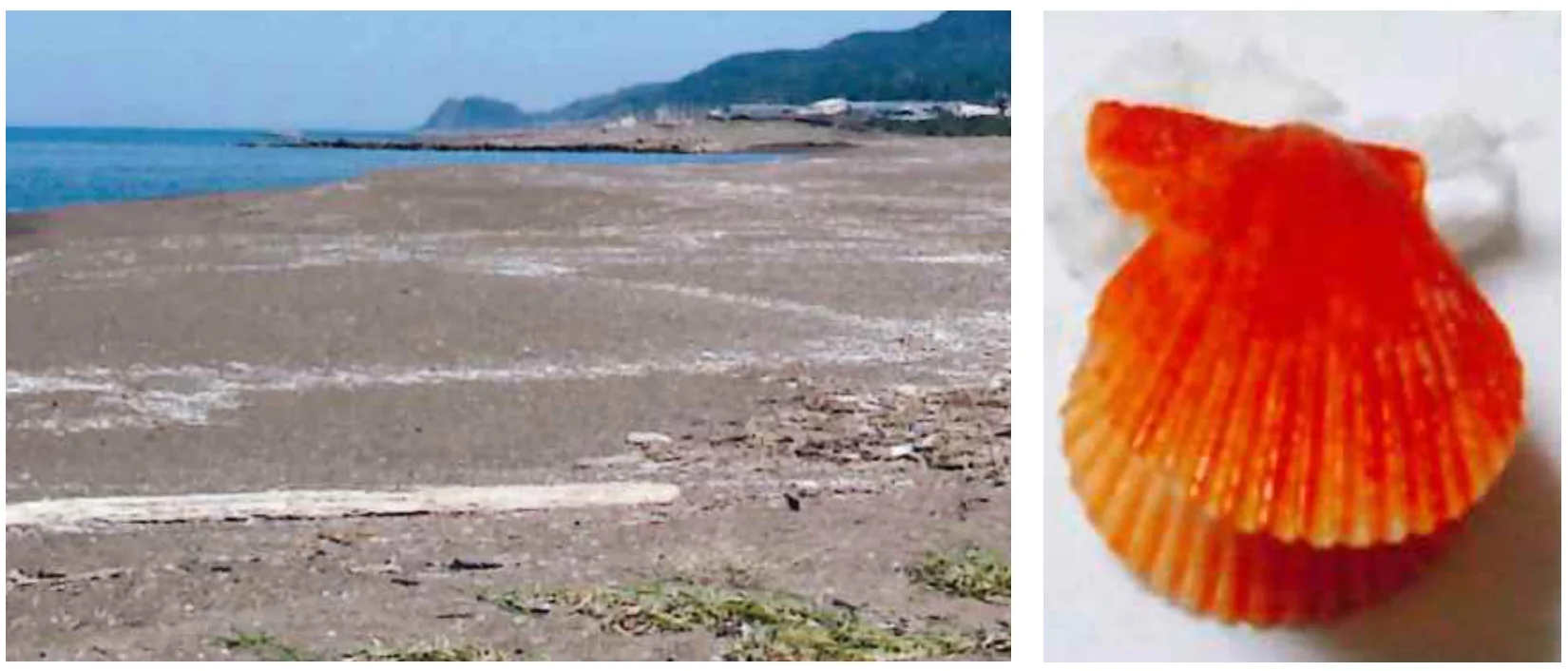 柿崎漁港(上越市柿崎区直海浜)と、貝がらだけでも拾うのが珍しいヒオウギ